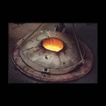 | pushed open the the large metal doors and walked into the Foundry and was surrounded by loud jet like sound. I looked to my right and saw the burner. In the ground was the cauldron where the Aluminum was being melted, it looked like a volcano. Now they turned up the heat and the sounds and looks very much like a jet engine. Afterwards more of the aluminum was dumped in and the heat turned up. After dropping in some amonium sulfide (i think) the instructor turned the lights off so that we could get a nice view of what it would look like prior to the light show. WOW!!!!!! | |||||